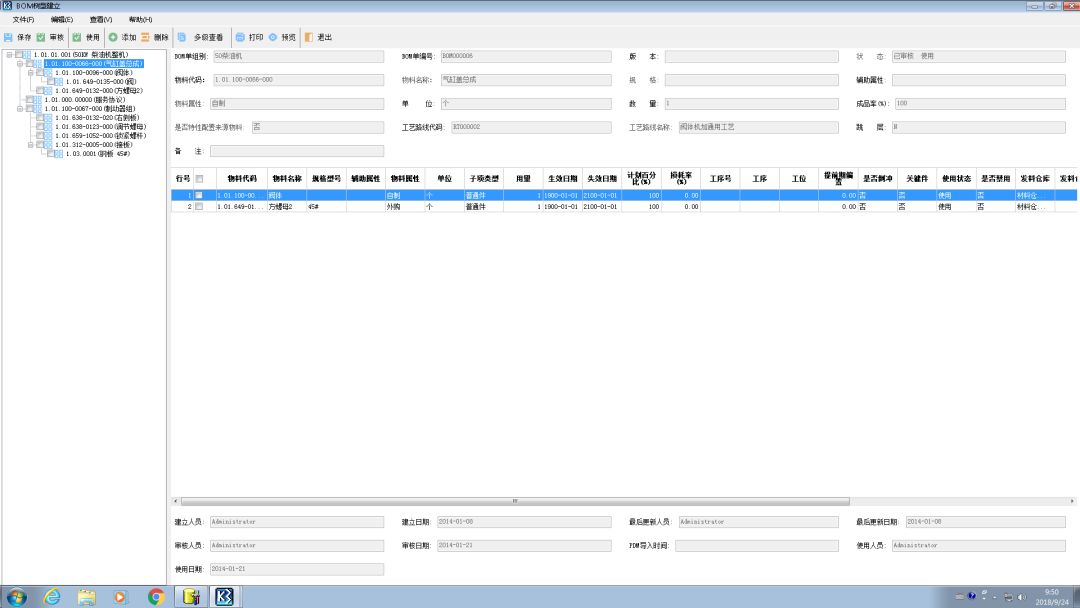 4、 可在BOM树型上进行审核、使用等基本操作;